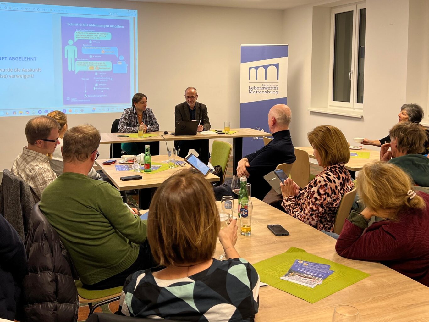 Ein war ein sehr interessanter und spannender Infoabend zum neuen Informationsfreiheitsgesetz am 19.11. im Florianihoffmann in Mattersburg. Nach hundert Jahren soll also Schluss sein mit dem Amtsgeheimnis. Aber können die Mattersburgerinnen und Mattersburger jetzt tatsächlich alles von „allgemeinem Interesse“, wie es im Gesetz heißt, von ihrer Stadt zu erfahren? Ja, aber … war darauf die Antwort von Erwin Ernst Steinhammer vom Forum Informationsfreiheit, der uns das neue Gesetz höchst sachkundig erklärt hat. Wieso „ja, aber“? Weil das Gesetz nicht nur die Tür weit aufmacht für mehr Information und Transparenz von Politik und Verwaltung, sondern auch noch viele Geheimhaltungsgründe kennt. Trotzdem sieht Steinhammer eine „große Chance für mehr BürgerInnenbeteiligung und Transparenz der Verwaltung.“ So sehen wir das auch. Und wie es eben bei einem nagelneuen Gesetz so ist: viele offene Fragen werden erst von Gerichten beantwortet werden. Es war eine angeregte Diskussion an diesem Abend, wir freuen uns, dass so viele da waren.